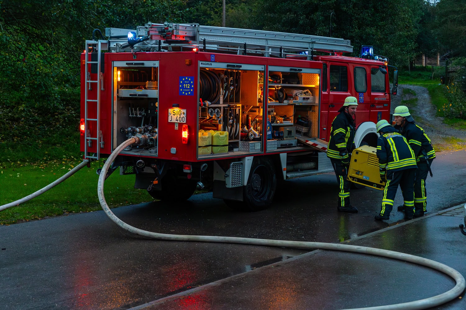Nach dem Eintreffen der Einsatzkräfte mit einem Tanklöschfahrzeug (TLF), einem Mannschaftstransportwagen (MTW) sowie dem Pumpenanhänger aus Rengetsweiler, begannen die Wehren sofort mit dem Aufbau der Löschwasserversorgung. Diese wurde von der Abteilung Rengetsweiler über den Ringgenbach sichergestellt. Parallel dazu startete die Brandbekämpfung.